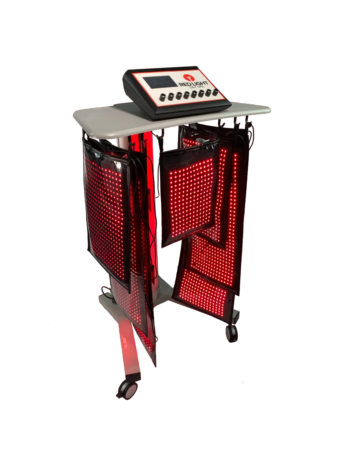 The LED Body Sculpting System emits red light that targets and kills the fat cells just under the skin. Red light stimulates the mitochondria of the fat cell, which generates a signal that opens the transient pores of the cell wall, resulting in a release of the cell's contents: triglycerides, fatty acids, glycerol, and water. The fat cell deflates much like a balloon emptied of its air volume.